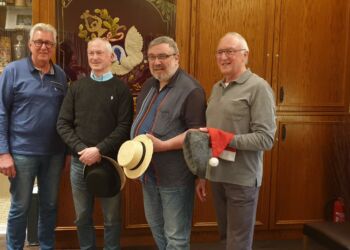 Nach weiteren Wein-und Schunkelliedern folgte der „vereinseigene Werbeblock“ mit dem Hinweis, dass beim QVH kein Aufnahmestopp besteht und weitere Sänger dem Chor gerne beitreten können. Aktuell darf sich der QVH als Glückspilz fühlen, da Bertold Fischer und Norbert Schmitz als Debütanten ihren ersten Auftritt hatten und künftig als neue Sänger den II. Tenor verstärken werden. Die Vereinsutensilien wurden den beiden, bereits nach einer Chorprobe, übergeben.