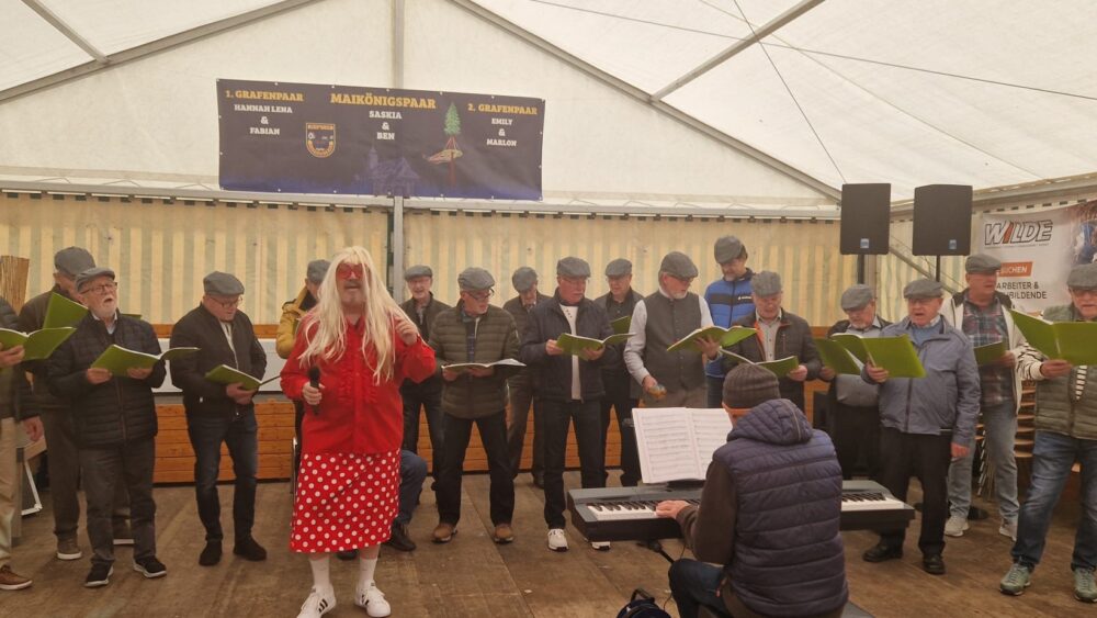 Im straffen Zeitplan der Veranstalter hatten die Sänger die Aufgabe, in der Mittagszeit die Kirmesbesucher*innen eine Stunde bei guter Laune zu halten. Mit dem abwechslungsreichen Lied-Repertoire umarmten die Sänger schnell die älteren und jüngeren Zuhörer*innen und damit das gesamte Publikum.